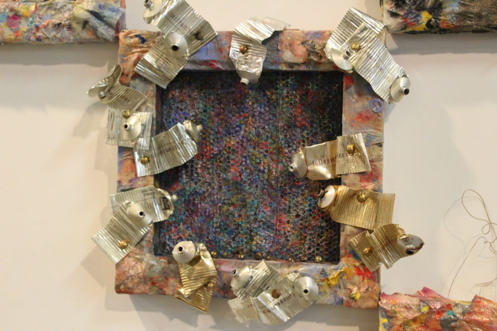 Marilee Cooper created a series of “segments” made from recycled, man-made objects such as chains, an old faucet and wires.